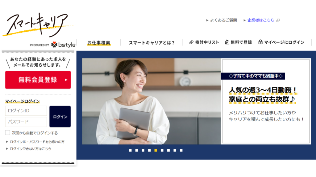 | 併用の理由・ メリット | 膨大なデータベースで希望条件を網羅 女性特有の社風やライフプランに踏み込んだ相談で納得感を高められる | 正社員求人を幅広く押さえる スマートキャリアで「スキルを活かした柔軟な働き方」を効率的に探れる |