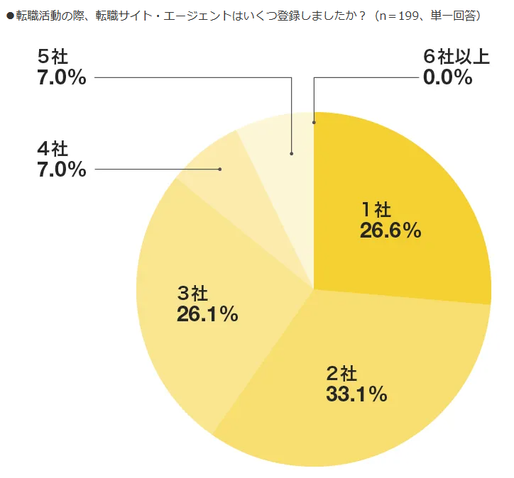 リクナビNEXTが実施した別の調査(2022年)でも、転職活動中のエージェント登録数の平均値は2.3社という結果が出ています。